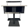 The tabletop is our classic marine grade pebble finish which has a comfortable texture, is water resistant, and won't snag your clothes while the cabinet grade birch wood core ensures long life and structural strength. This design outshines traditional hydraulic grooming tables and pet lift grooming tables, offering the best combination of functionality, durability, and convenience in a grooming setting.