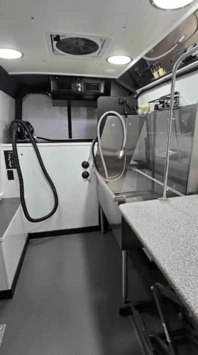 Hanvey Grooming Vans set a new standard for the mobile grooming experience, making them the ideal choice for those looking for a dog grooming van. Enjoy reliable, generator-free power and unmatched maneuverability in the quietest, cleanest, and most inventive dog grooming van in the industry.